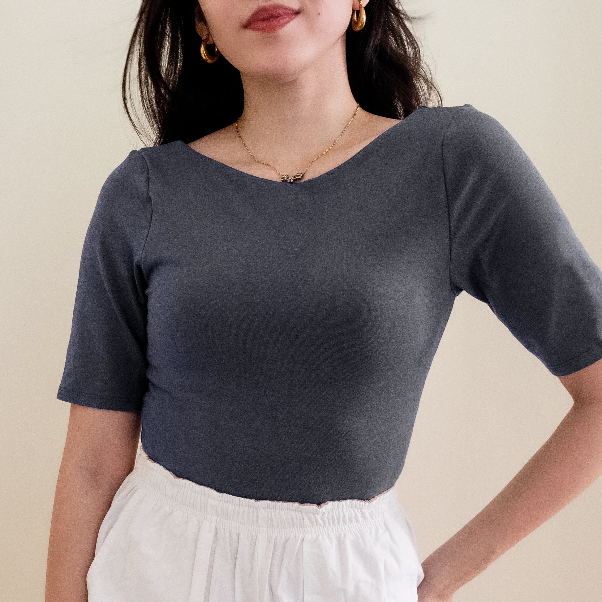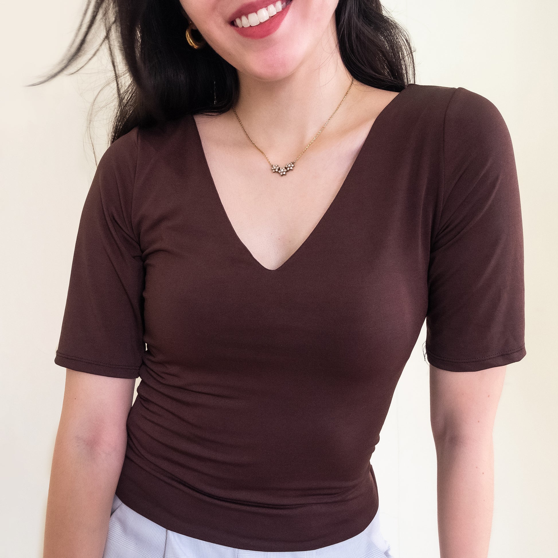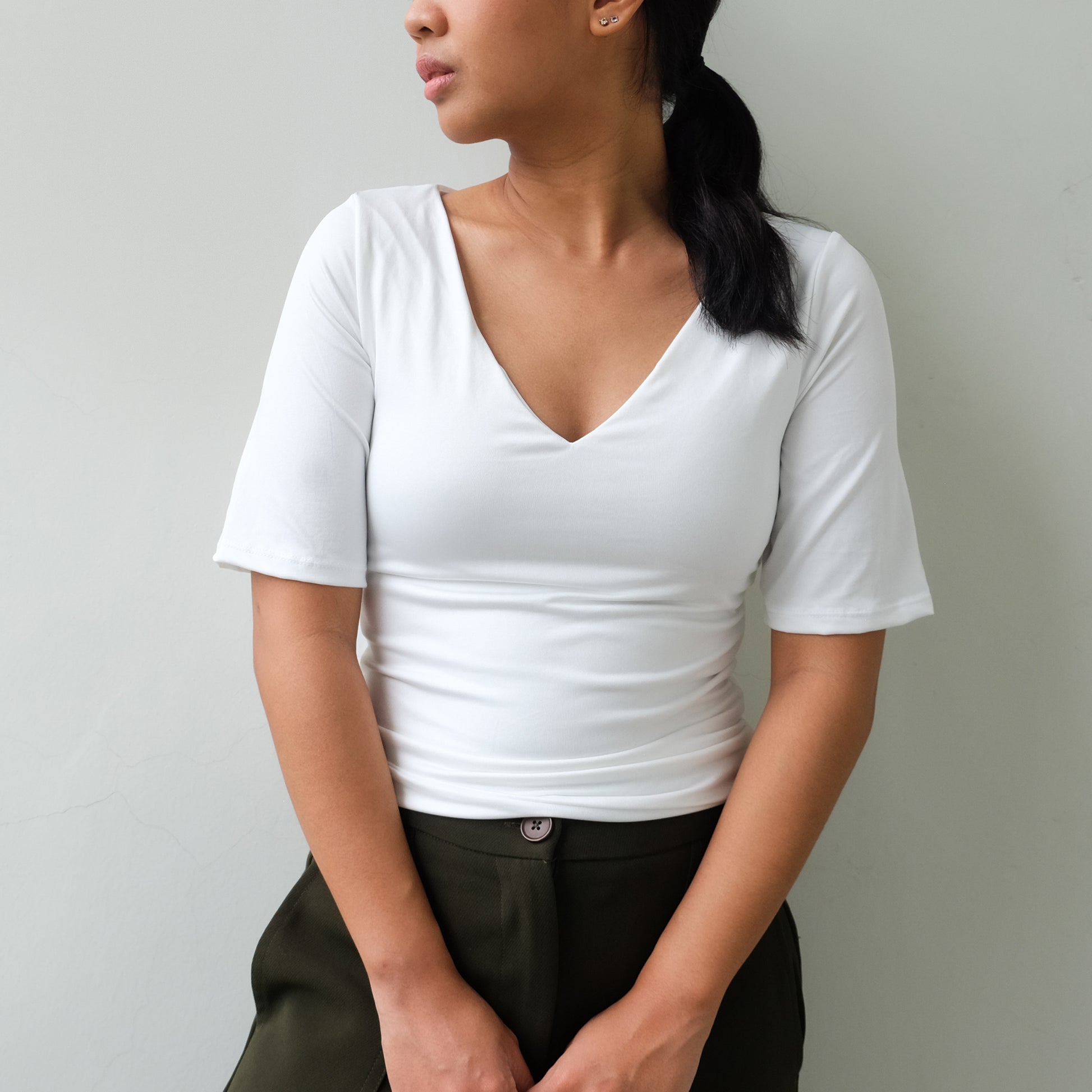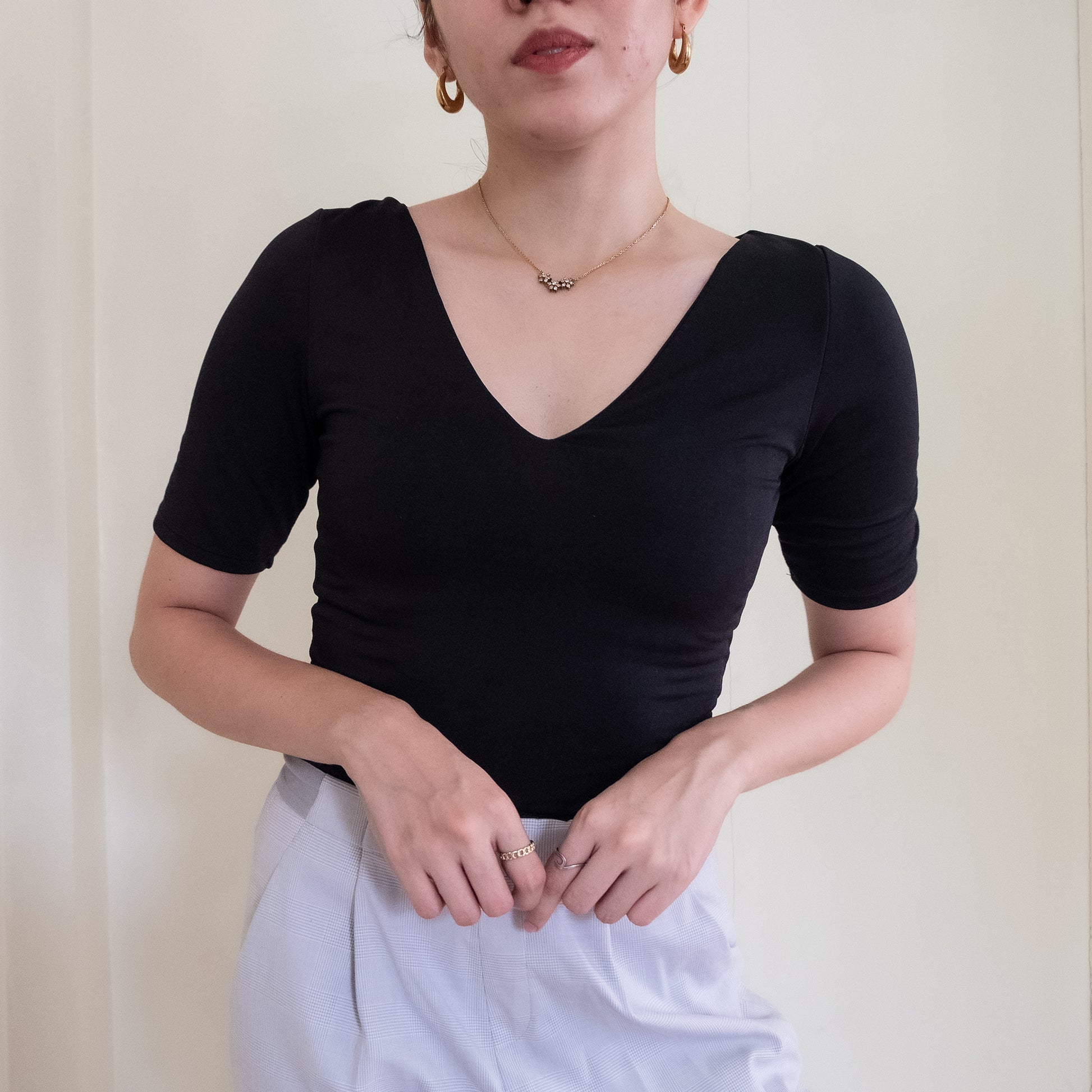 ◑ deep v neckline