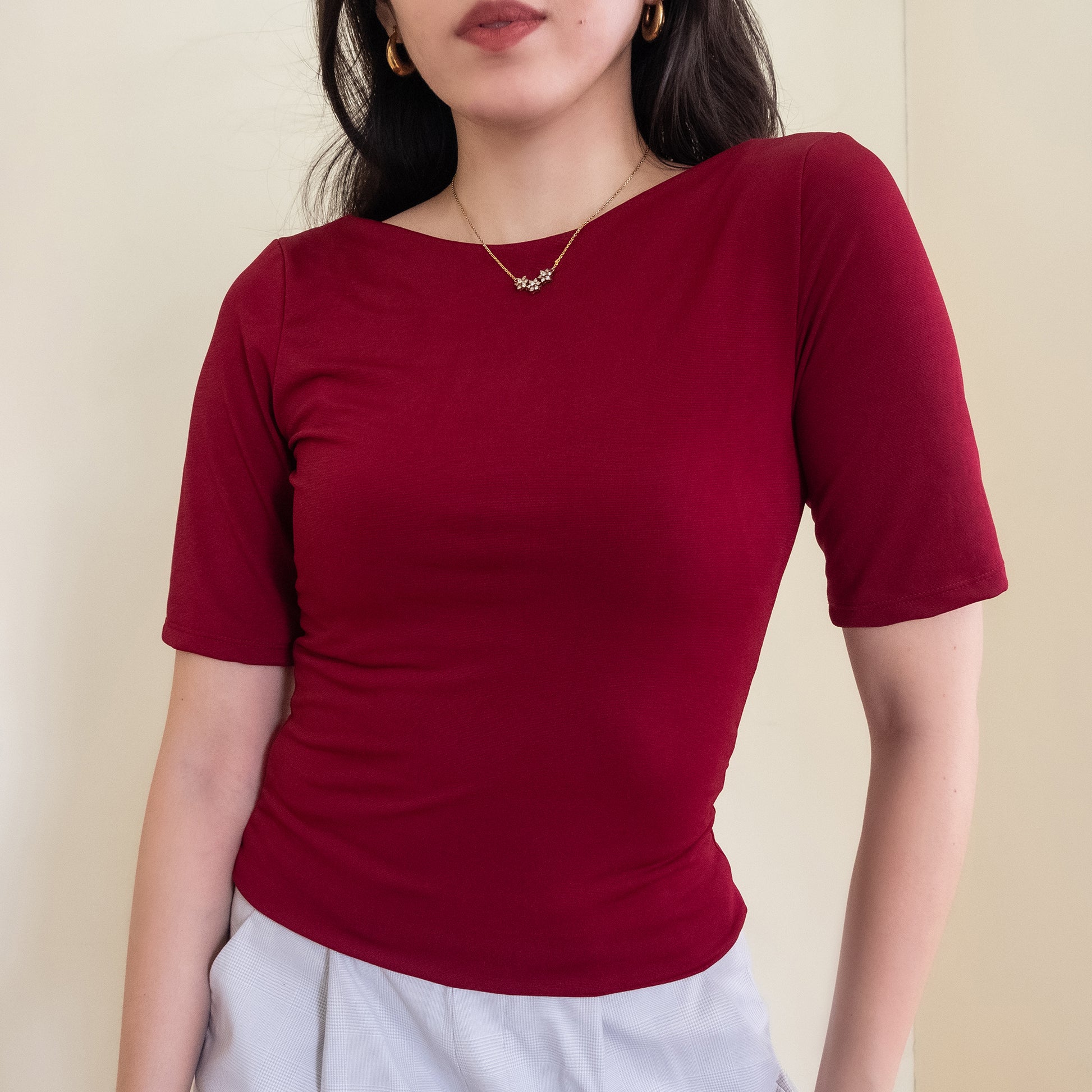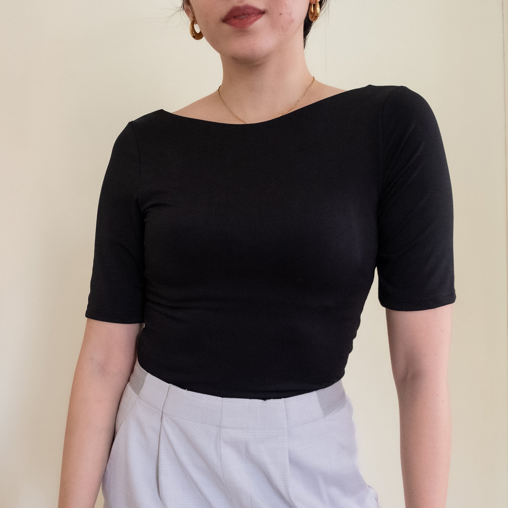 It is business in the front (with a classic boat neck cut) and party at the back (with an adventurous deep V neckline). Wear one side to work and flip it over for a night out. 💃🏻This blouse can really Do it All